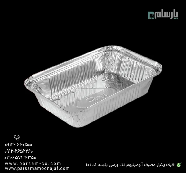 مشخصات ظرف یکبار مصرف آلومینیوم تک پرسی پارسه کد 101