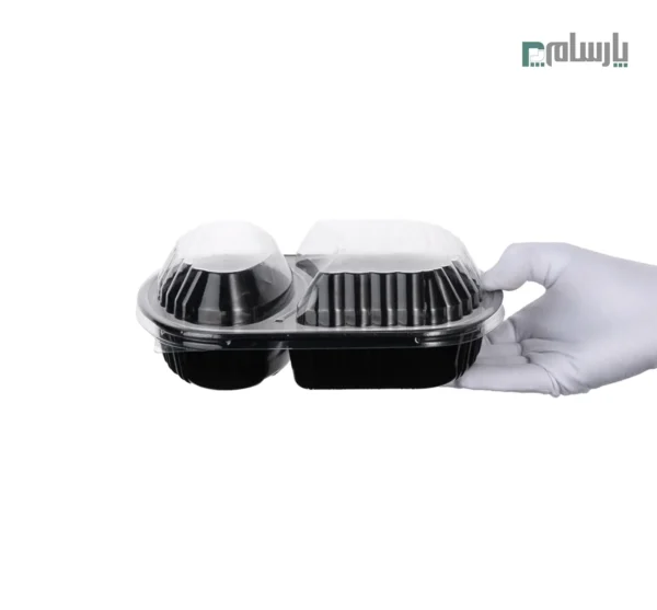 مشخصات: ظرف ترموفرمینگ یکبار مصرف بیضی دو خانه عمق 4.5-مشکی