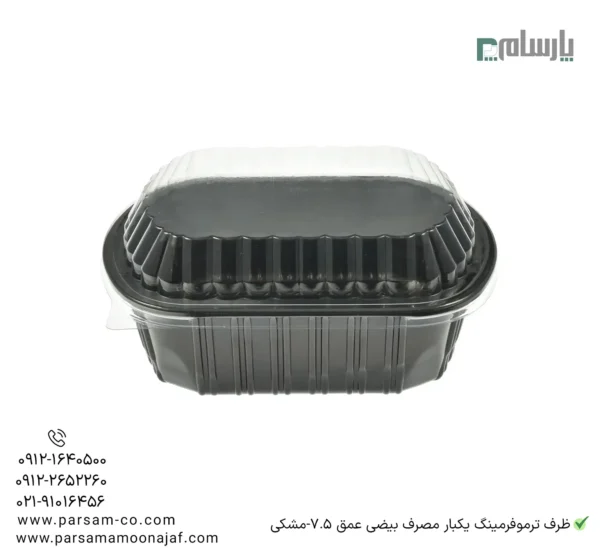 مشخصات: ظرف ترموفرمینگ یکبار مصرف بیضی عمق 7.5-مشکی