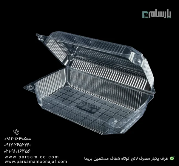 در این بخش از محصولات شرکت پارسام به بررسی ظرف یکبار مصرف لانچ کوتاه شفاف مستطیل پریما میپردازیم و به شما مشتریان معزز اطلاعات کامل این محصول را میدهیم ، تا انتهای این مقاله با ما همراه باشید.