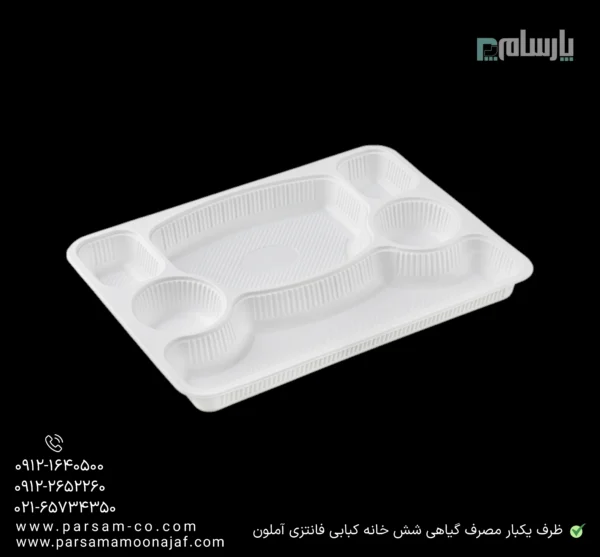 مشخصات ظرف یکبار مصرف گیاهی شش خانه کبابی فانتزی آملون