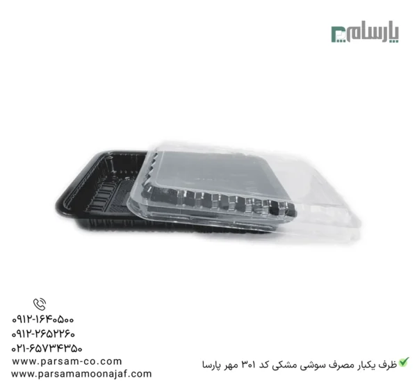 مشخصات ظرف یکبار مصرف سوشی مشکی کد 301 مهرپارسا