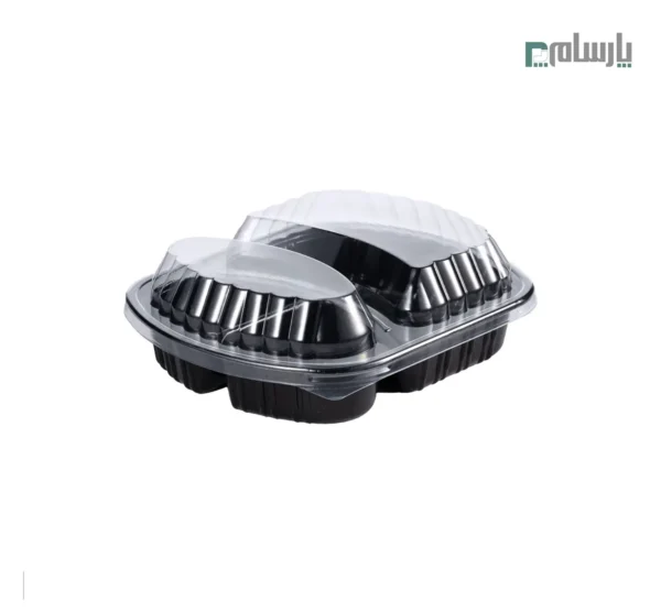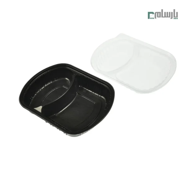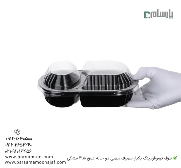 مشخصات: ظرف ترموفرمینگ یکبار مصرف بیضی دو خانه عمق 4.5-مشکی